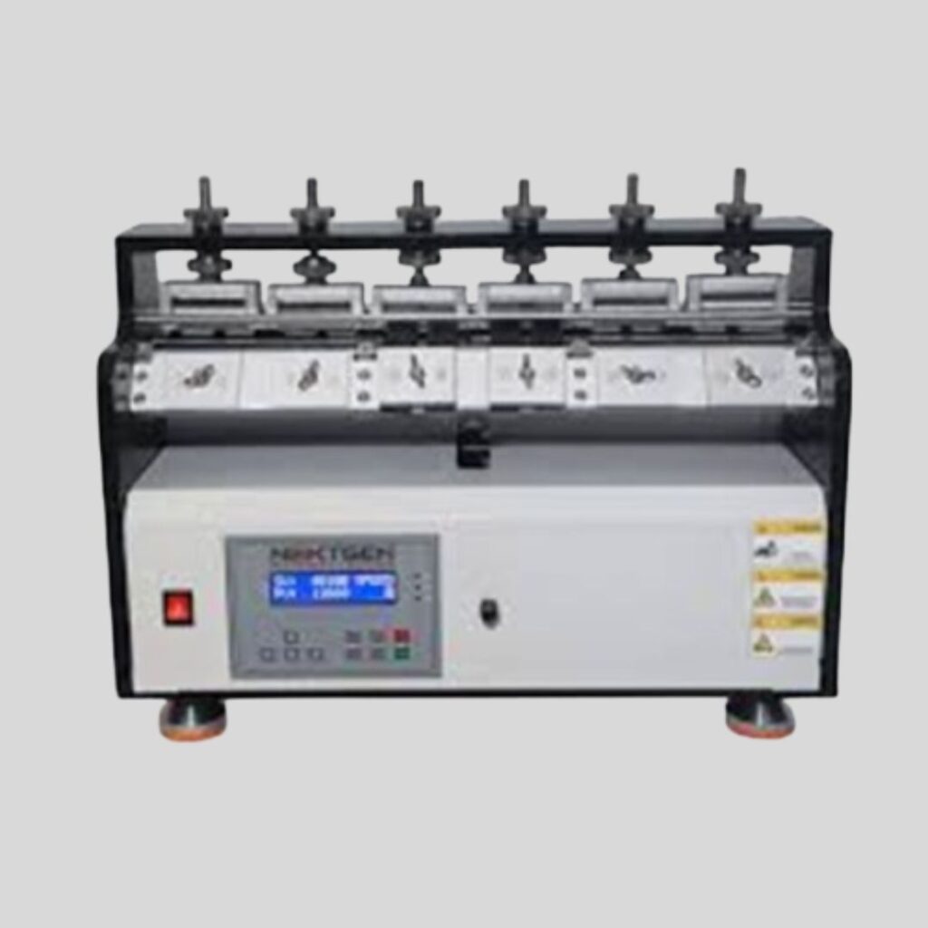 Flex Tester is to test the resistance to folding of flexible materials, such as rubber, leather, synthetic fabrics, films, etc. Flexing tester complies with ISO 5402, ISO 7854, BS 3424, L1096, ISO 2313, AATCC 66, etc.